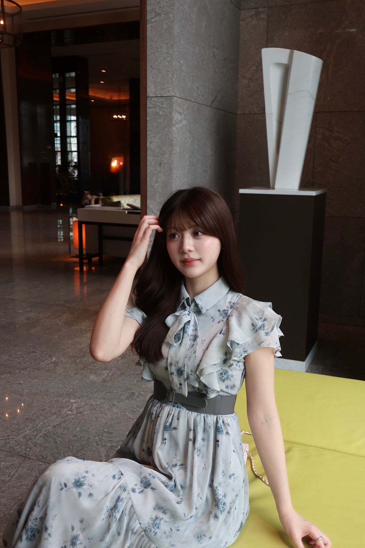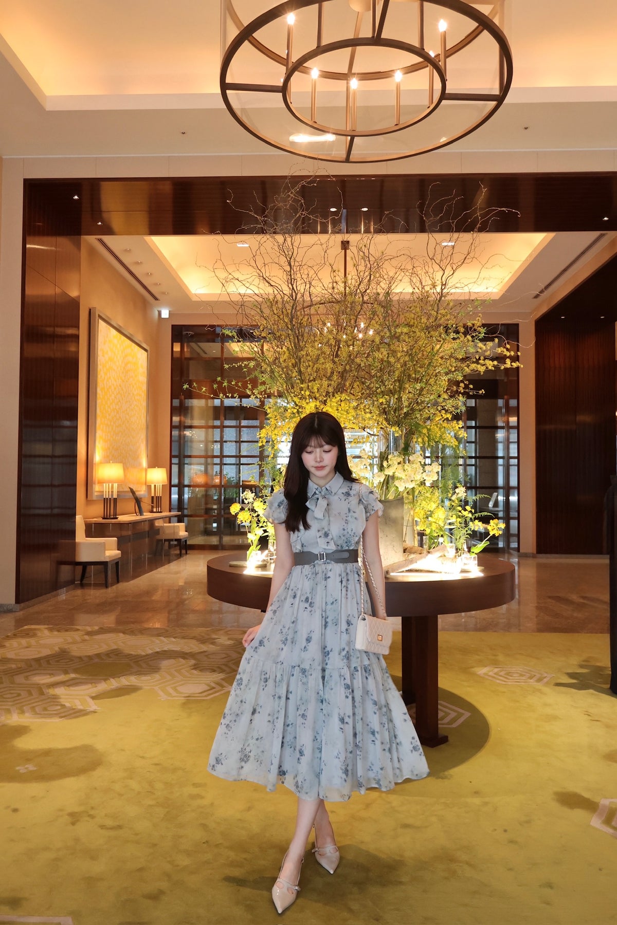 毎年人気のベルト付きのフラワードレス。今年は透け感のある楊柳素材でご用意しました。二の腕をカバーしてくれるフリルスリーブと取り外し可能なベルトでウエストマークし、スタイルアップも叶います。肌馴染みの良いベージュ、柔らかな雰囲気のブルー、白いお花が目立つ定番のブラックの三色展開です。