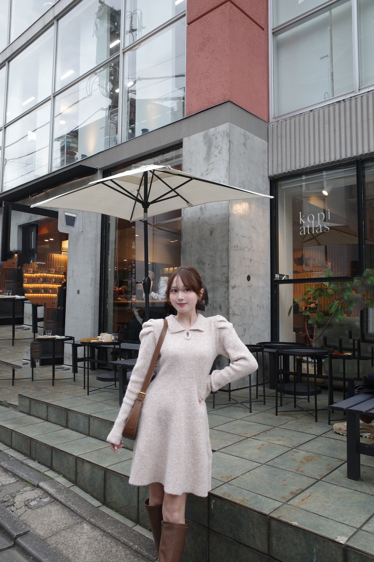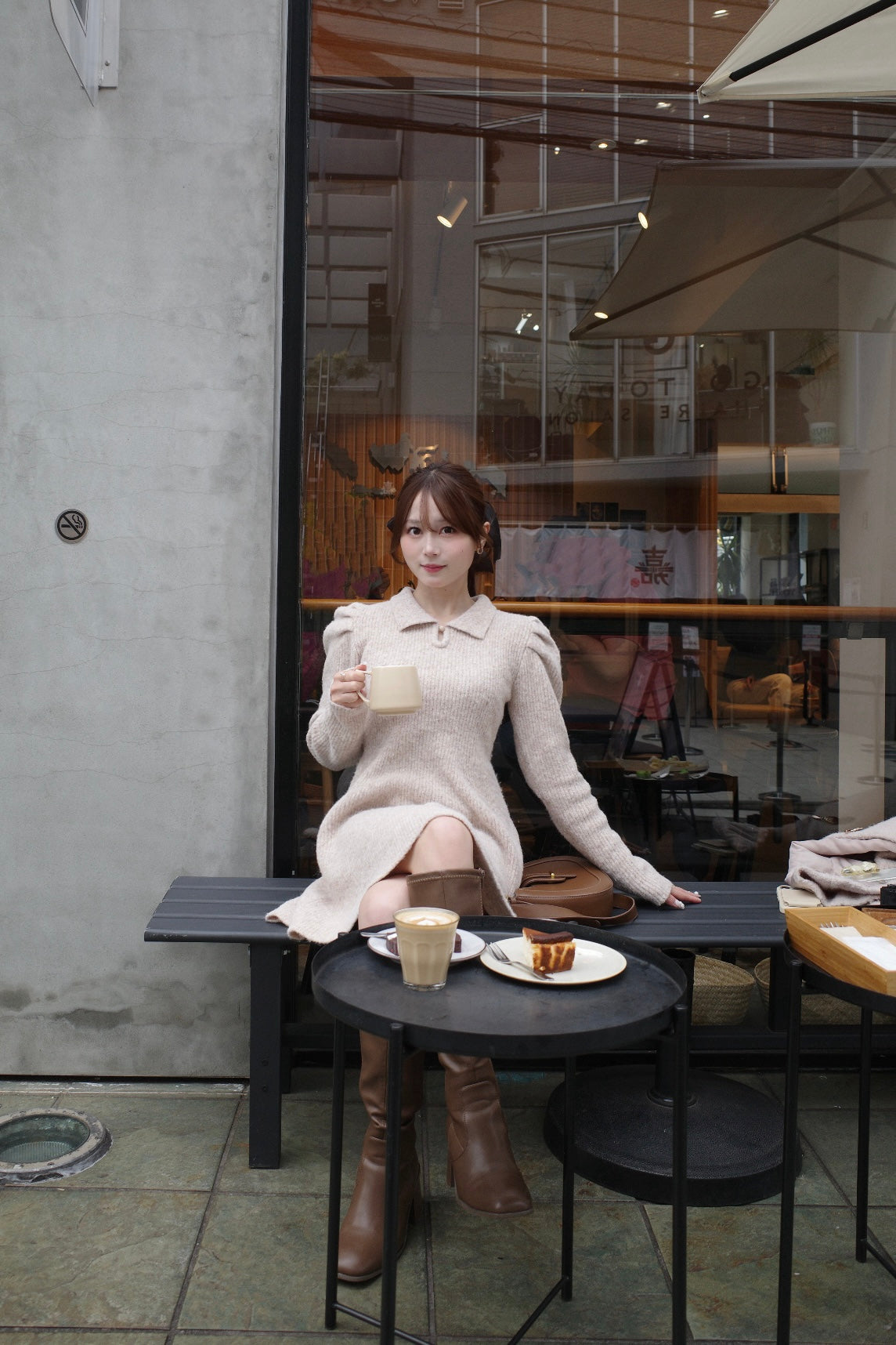 膨らみがあり、肌あたりの柔らかい糸を使ったニットワンピース。