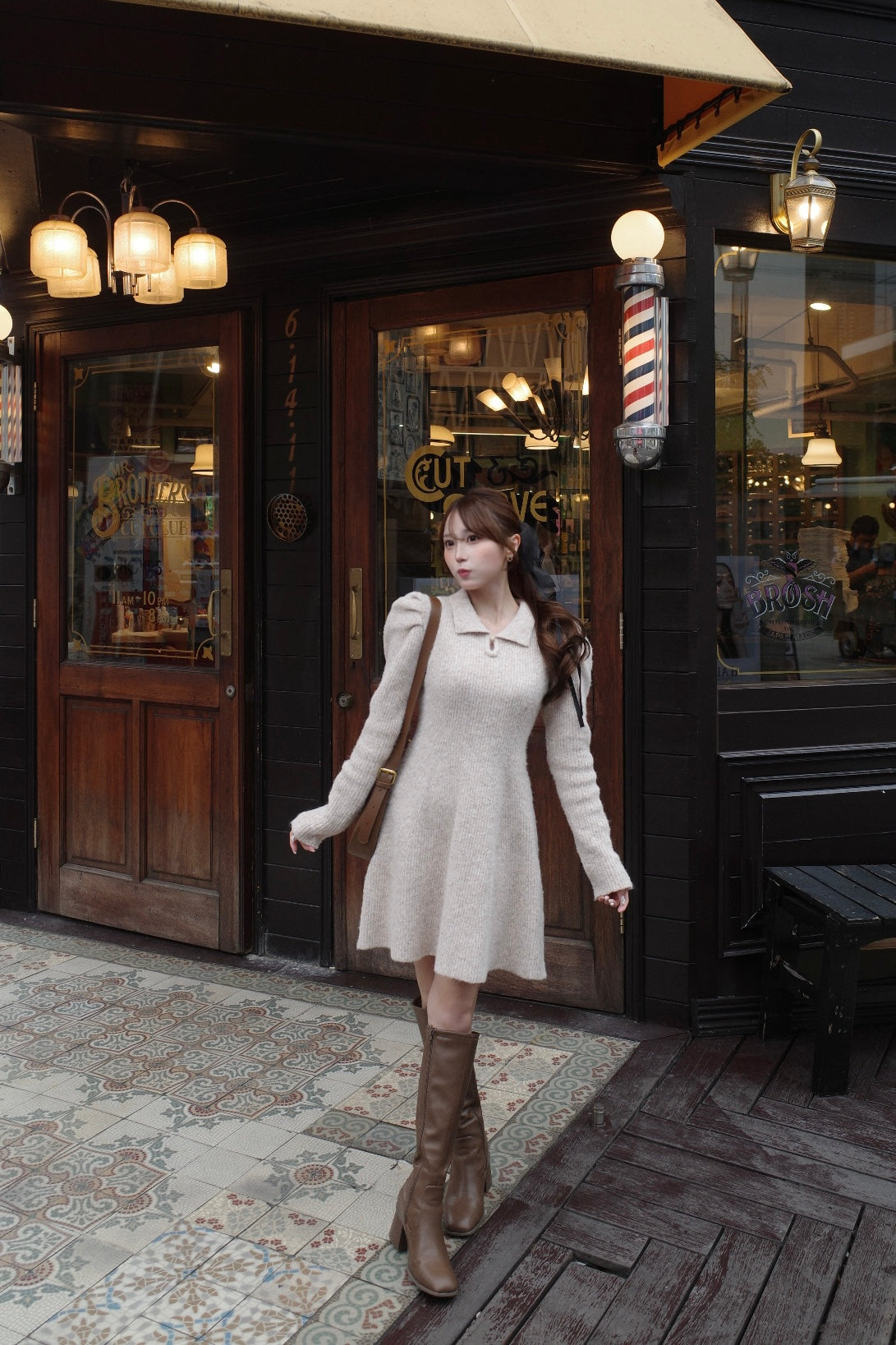上半身はコンパクトなサイズでウエストから綺麗に広がるフレアシルエットで体のラインが綺麗に見えるデザインです。