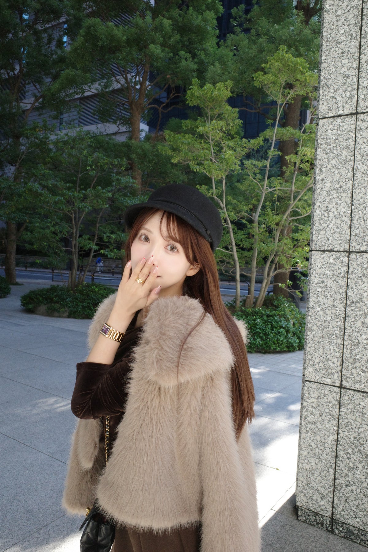 ふわふわで柔らかなフェイクファーを使用した、上品でトレンド感あふれるジャケット。