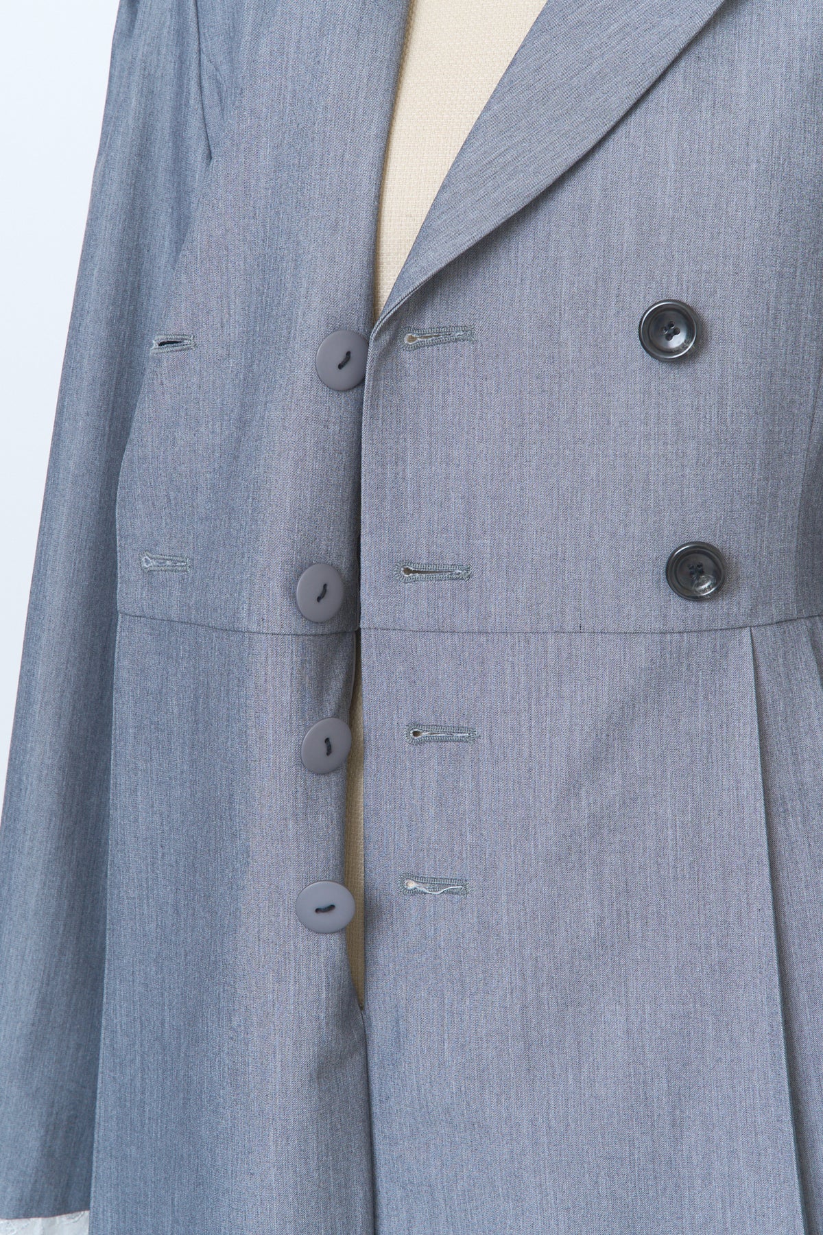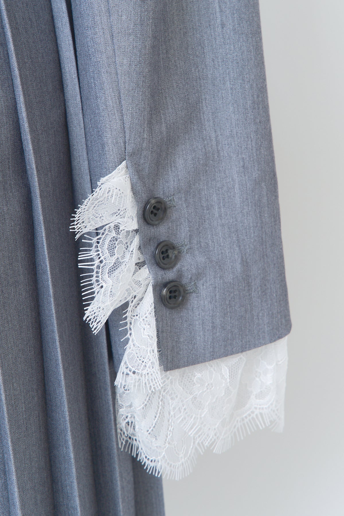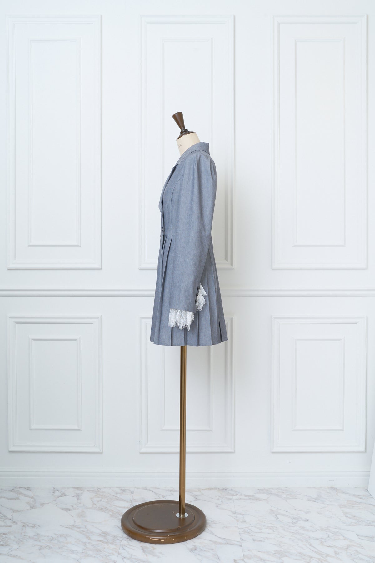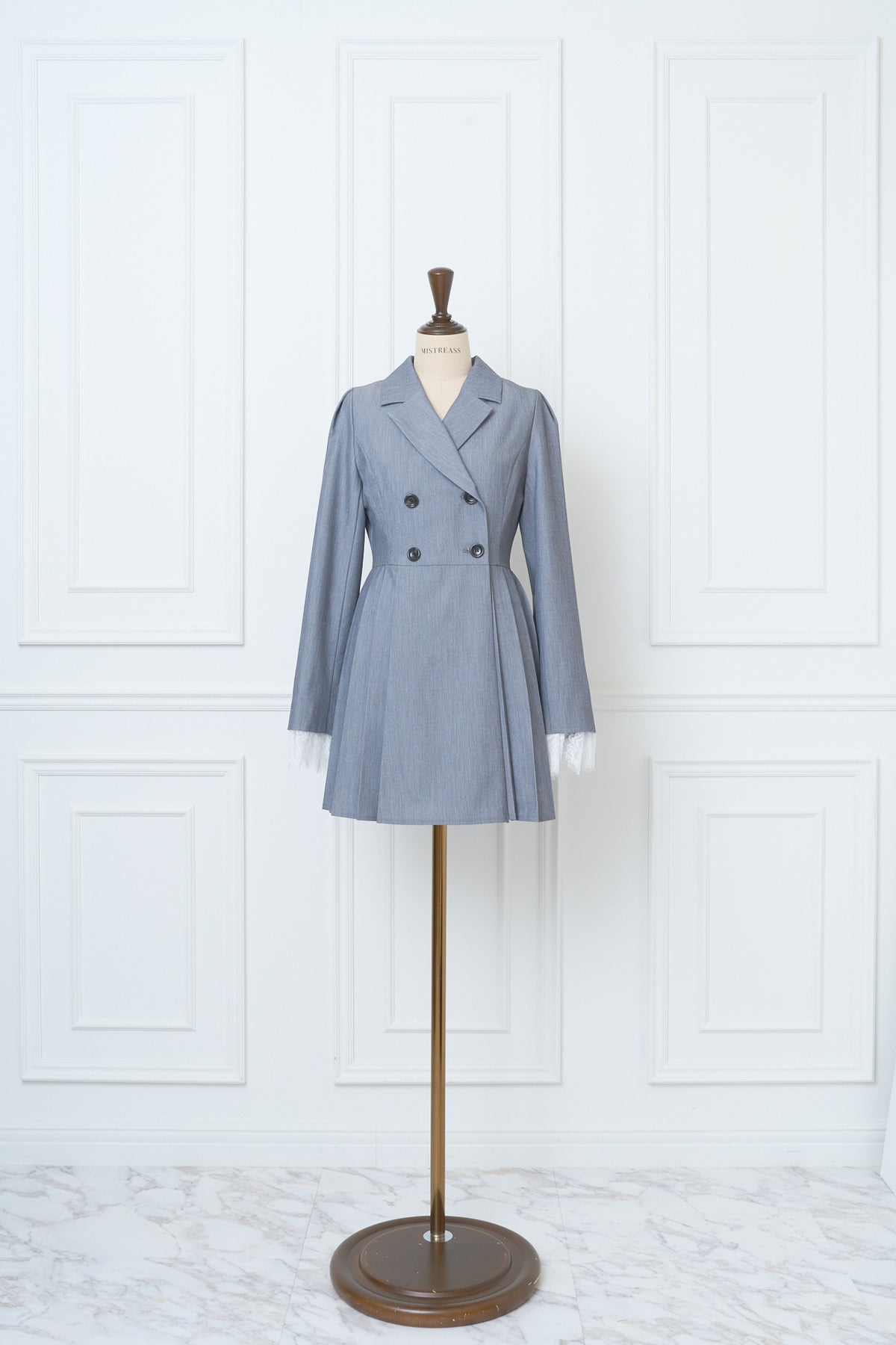 軽やかなTR素材で仕立てた、ジャケット見えワンピース。ウエスト位置を高めに設定したプリーツスカートで、自然にスタイルアップが叶うシルエットに。ダブルボタンできちんと感を出しつつ、袖口のレースカフスが今年らしい特別感を演出してくれます。1枚でさらっと着るだけで、上品さと可愛さのバランスが完成する一着です