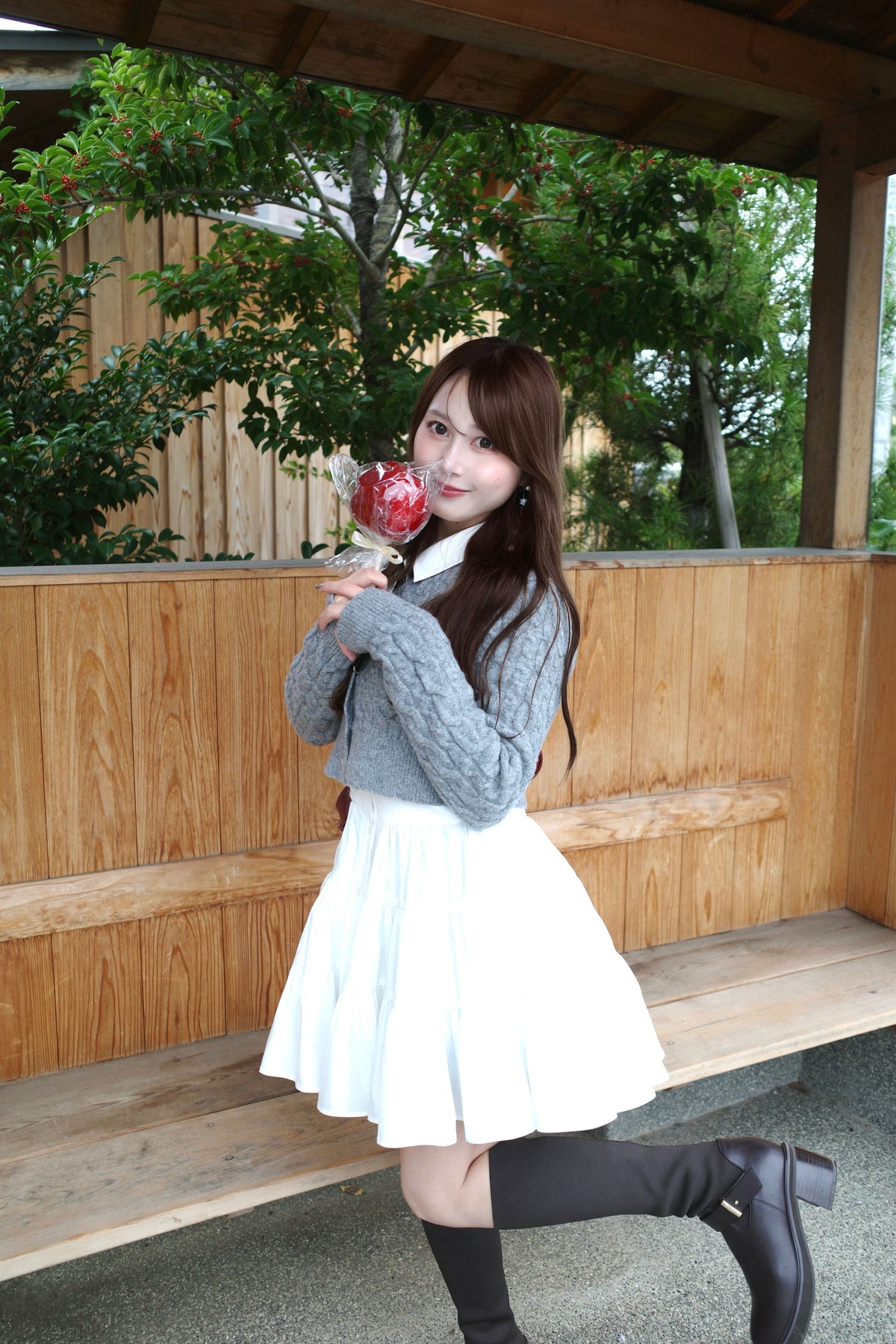 ブーツ合わせで甘すぎない大人ガーリースタイルが完成します。