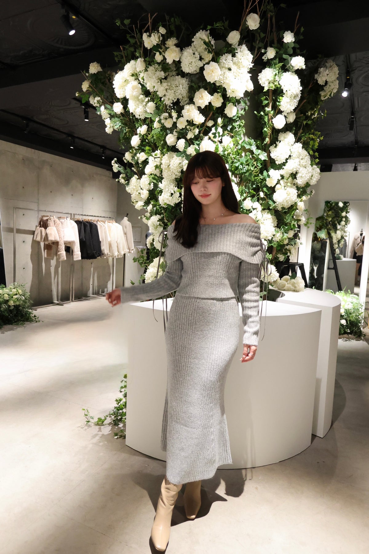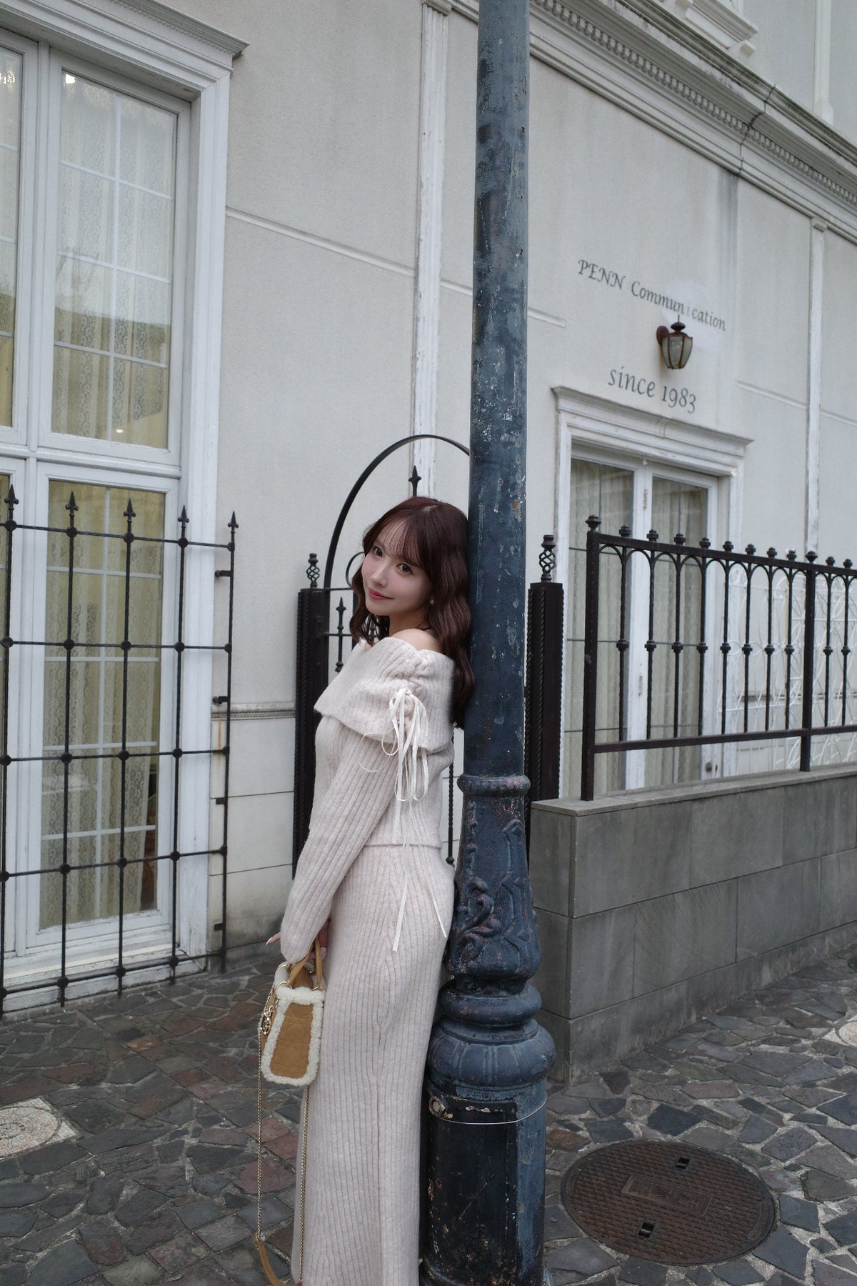 【12月上旬配送】Ribbon Off-Shoulder Knit Set-Up