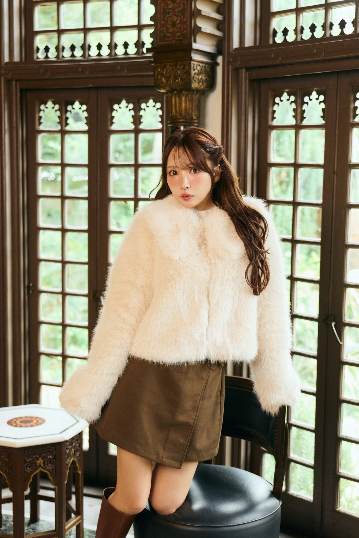 ふわふわで柔らかなフェイクファーを使用した、上品でトレンド感あふれるジャケット。